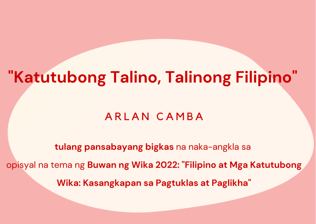 “Katutubong Talino, Talinong Filipino” (tulang pansabayang bigkas na naka-angkla sa opisyal na tema ng Buwan ng Wika 2022: “Filipino at Mga Katutubong Wika: Kasangkapan sa Pagtuklas at Paglikha“)