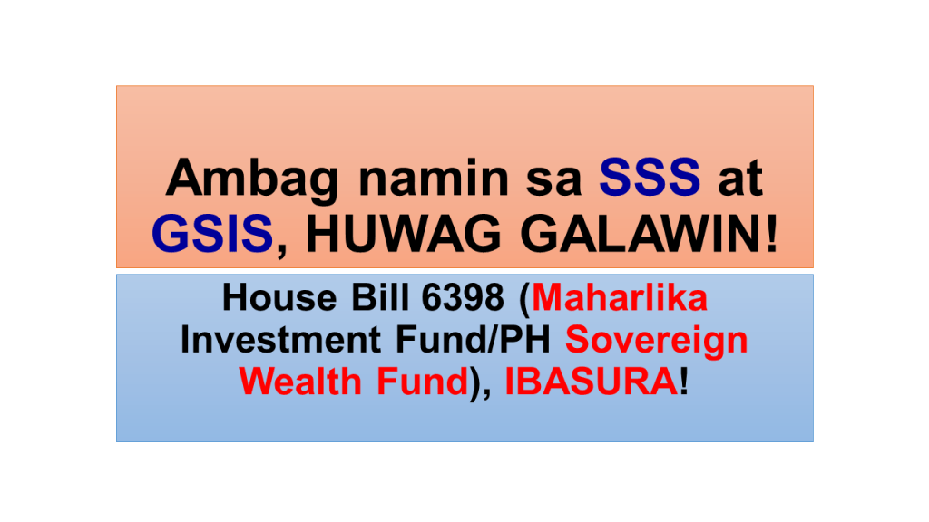 Malaking tipak ng nasabing investment fund ang mangggagaling sa pera ng SSS at GSIS na mula naman sa ating kontribusyon. Ibig sabihin, ang pera natin ay gagamitin ng gobyerno para mamuhunan sa iba’t ibang bagay na sabi nila’y pwedeng tumubo at pwede tayong makinabang. Pero kapag sinuring mabuti ang panukalang batas, magiging malinaw na wala tayong mapapakinabangan dito at malaki pa nga ang posibilidad na malagay sa peligro ang pensyon ng mga retirado na at ang kontribusyon sa SSS at GSIS ng mga nagtatrabaho ngayon. Narito ang 13 dahilan bakit tutol tayo sa House Bill 6398.